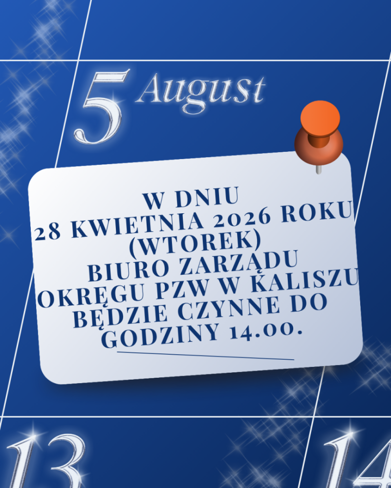 Biuro Zarządu Okręgu PZW w Kaliszu będzie czynne do godziny 14.00.